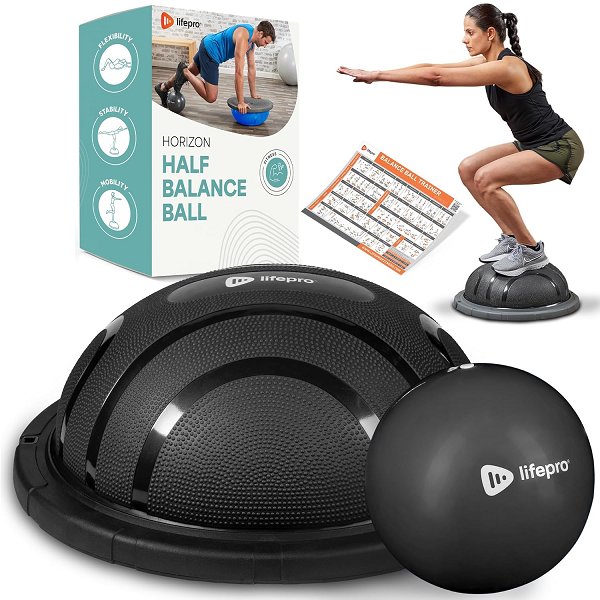 Lifepro Half Exercise Ball Trainer - Textured & Durable PVC Balance Ball with Anti-Slip Grip - black -( model: ‎LP-HBBT )