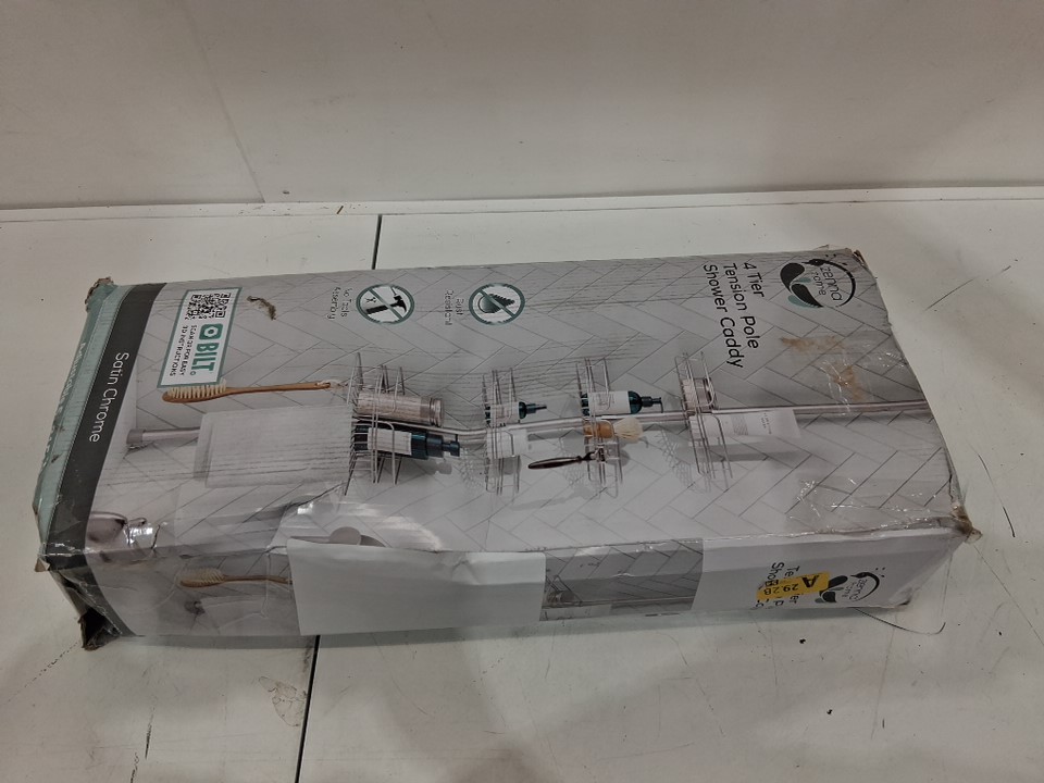 ZENNA HOME ADJUSTABLE TENSION POLE SHOWER CADDY 4-TIER ORGANISER - 5FT to 8FT - SATIN CHROME (MODEL: ‎2161PC)