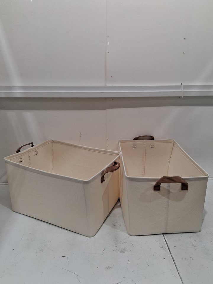 2PK STORAGE WORKS collapsible strorage baskets with handles - 30l - cream / brown