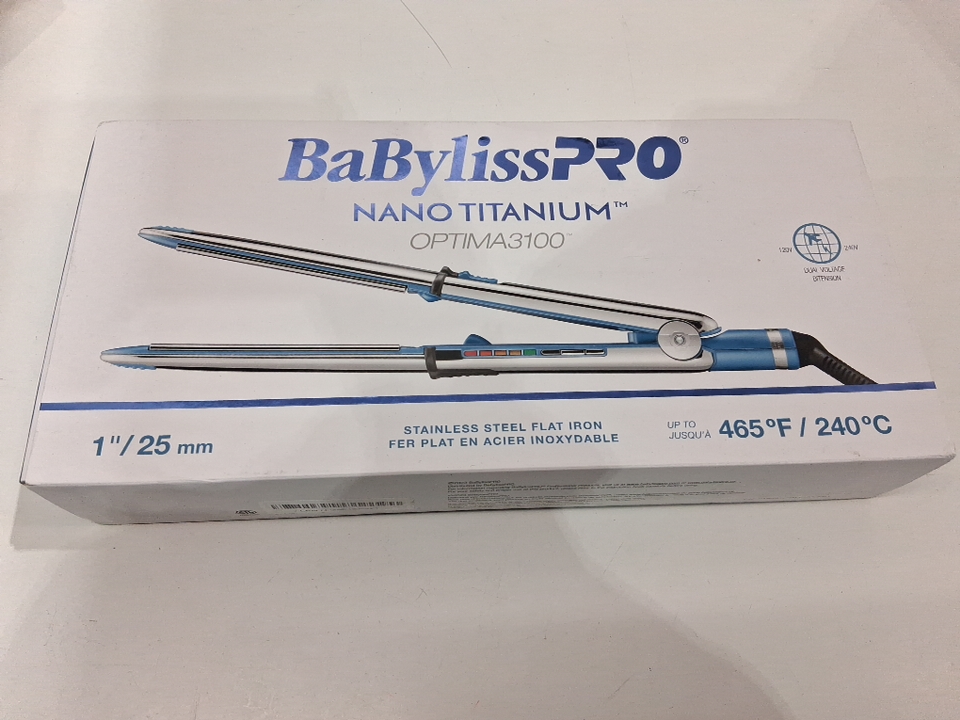 BABYLISSPRO NANO TITANIUM OPTIMA3100 STAINLESS STEEL DUAL-VOLTAGE HAIR FLAT IRON - 120V/240V - 1" - BLUE (MODEL: BABSS3100TUC)