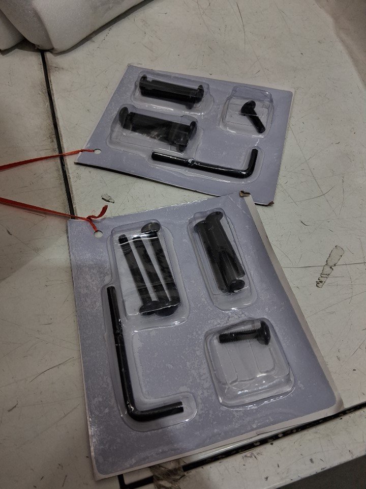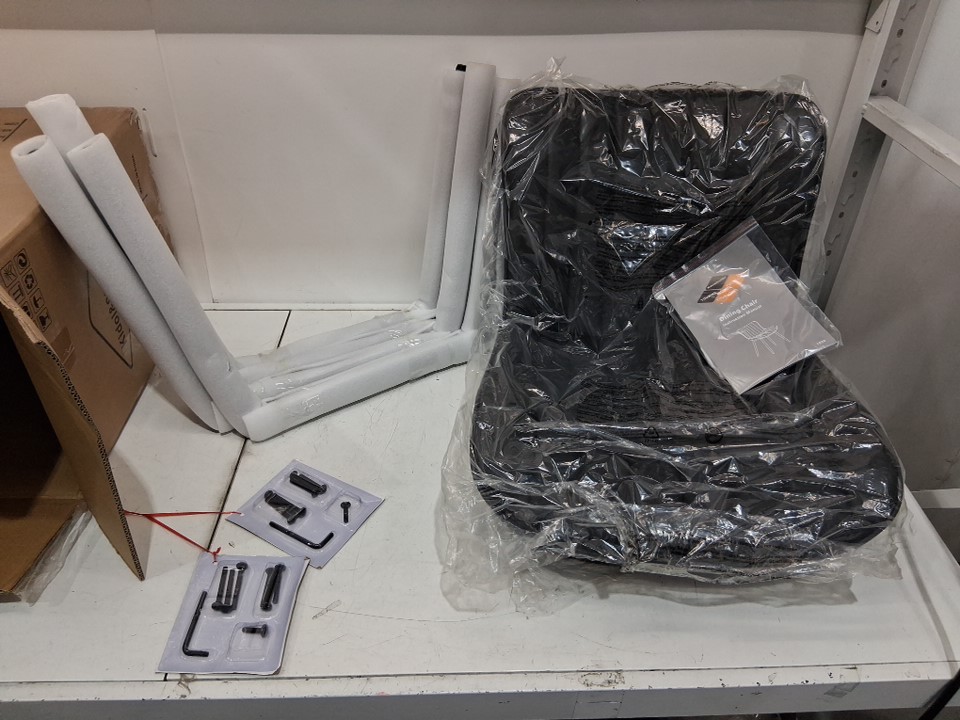 Slight dirt on bottoms of chair legs is likely from returns warehouse, see photos. The rest of the chair assembly appears to be in new condition and the hardware is sealed.