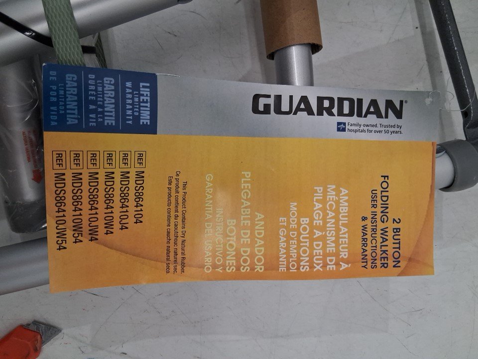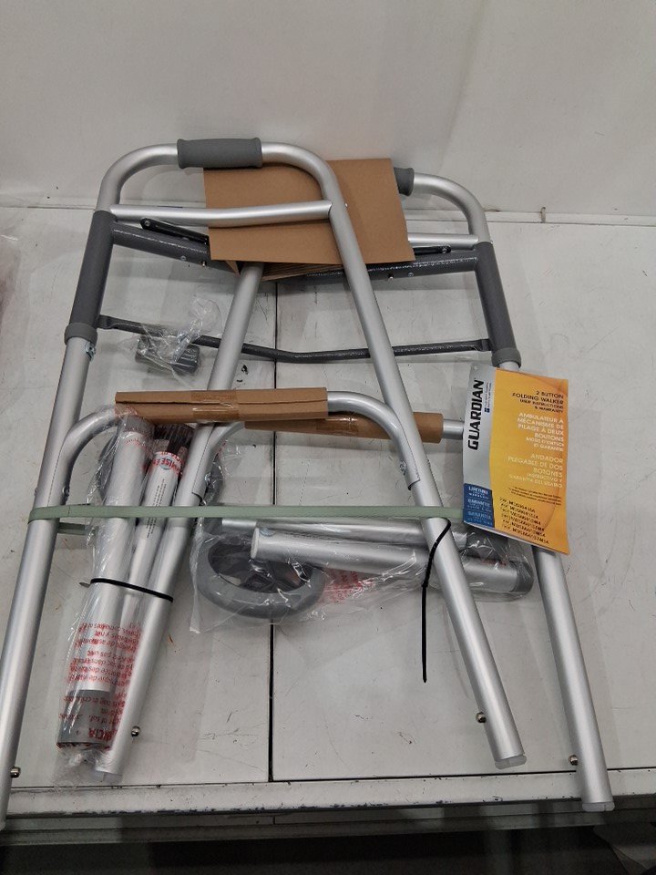 MEDLINE GUARDIAN ADJUSTABLE ALUMINUM 2-BUTTON FOLDING WALKER - 300lbs capacity - GREY - (MODEL: MDS86410W54)