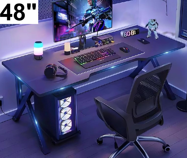 Ergonomic LARGE GAMING DESK with K legs - ~ 48" - BLACK