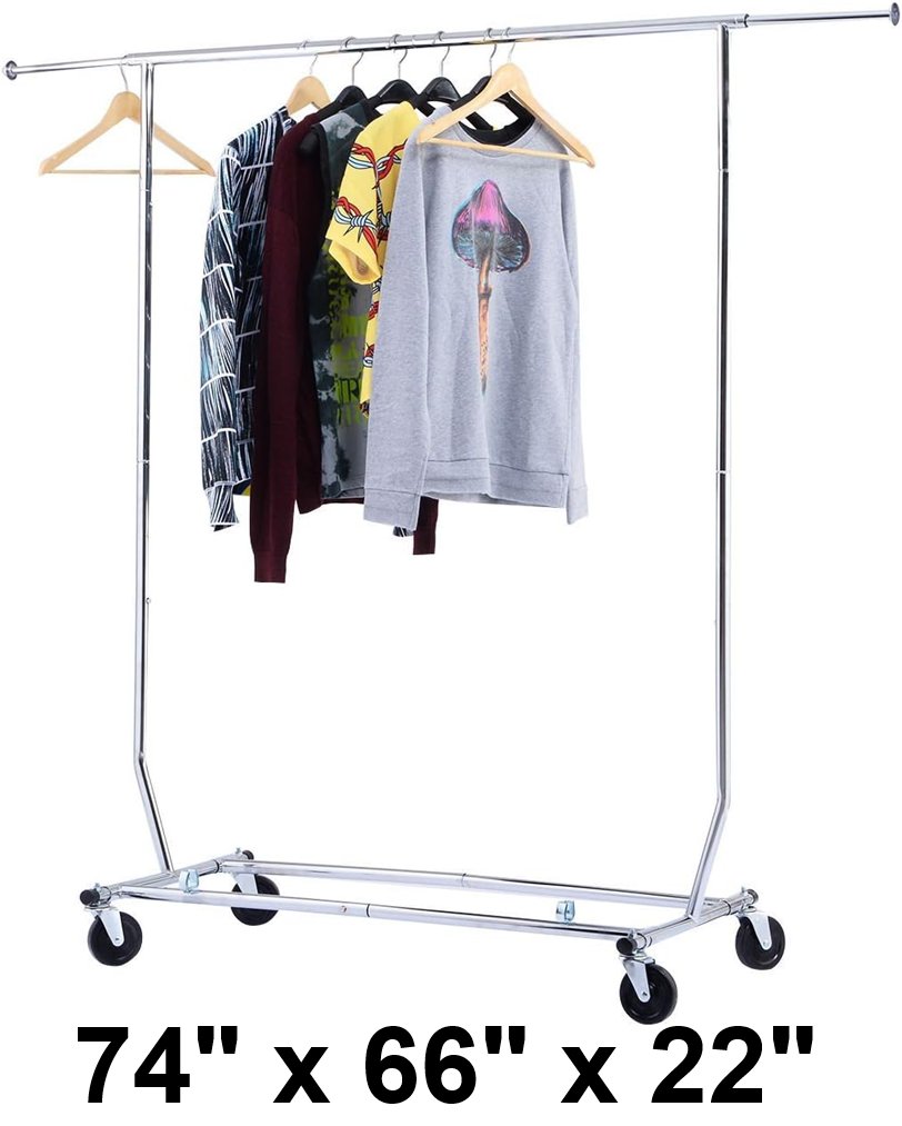 chooseandbuy heavy duty clothing garment rack with wheels - 74" x 66" x 22" - silver