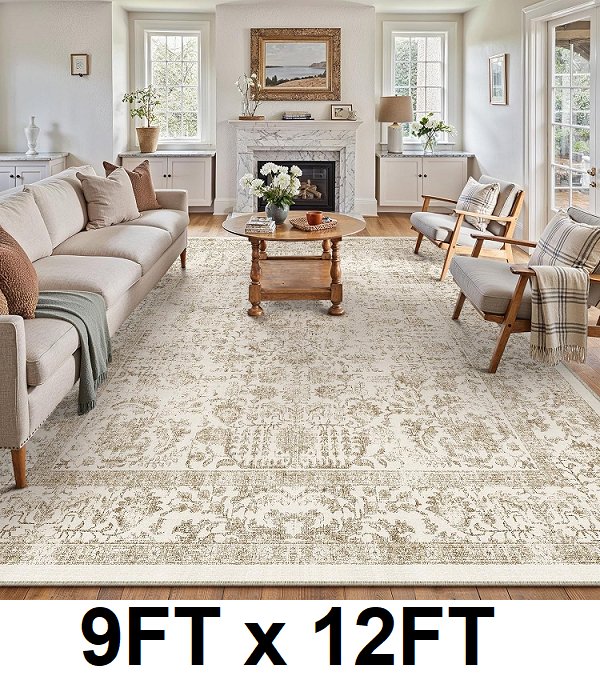 PureCozy Machine Washable Vintage Area Rug - 9FT x 12FT - Light Brown
