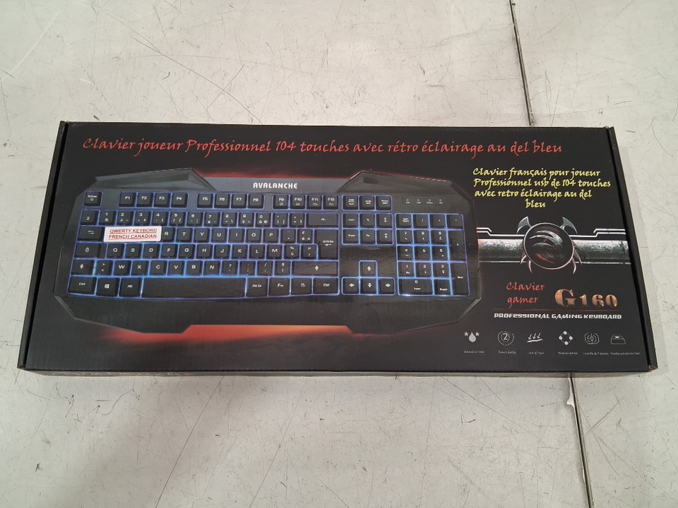 avalanche French Gaming QWERTY Keyboard with Blue Backlight and104 Keys - black/blue (model: g160)