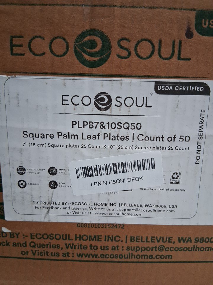 50pk ECO SOUL 100% Compostable Disposable Palm Leaf Plates -(25pk) 7" /(25PK) 10" - brown