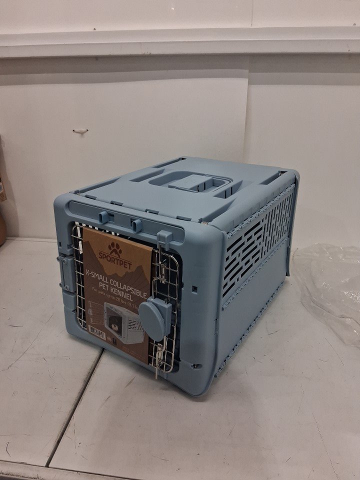 sportpet collapsible x-small hard-sided pet travel carrier - 19.6" x 13.5" x 12" / 20lbs capacity - light blue (model: