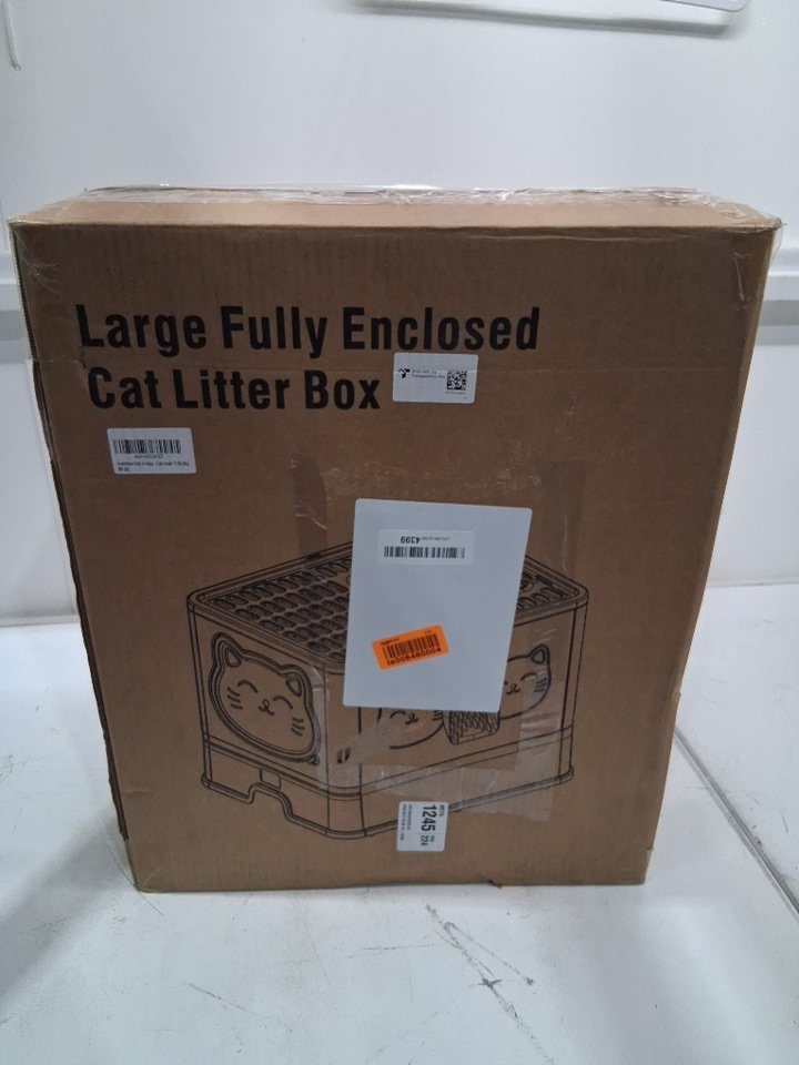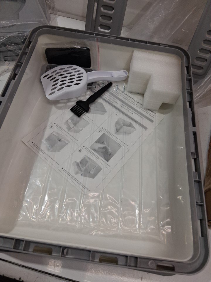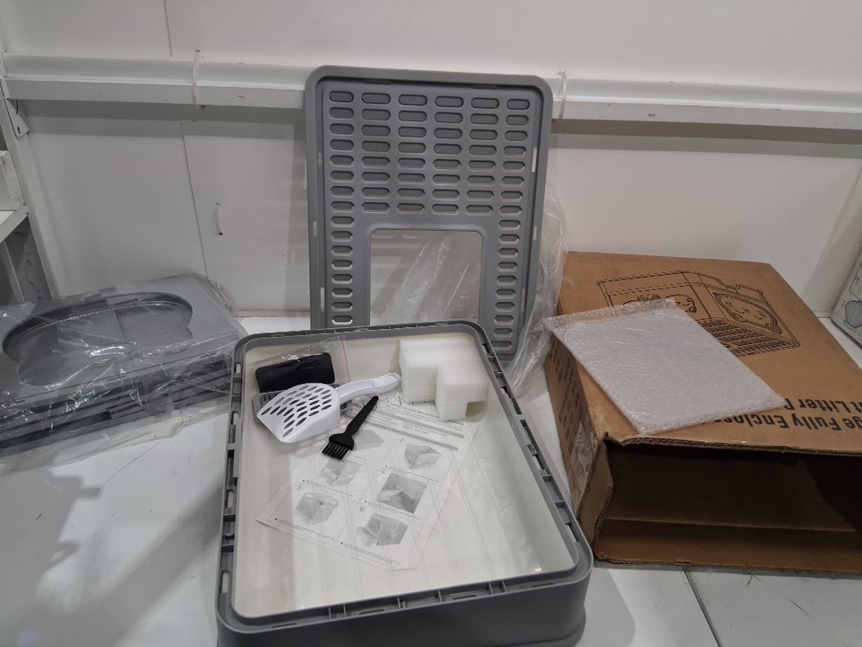 HELLOMIAO FULLY ENCLOSED FOLDABLE DRAWER-TYPE CAT LITTER BOX WITH LID, PLASTIC SCOOP, DEODORIZING FILTER & FEATHER TOY - LIGHT GREY (MODEL: MSP-01)