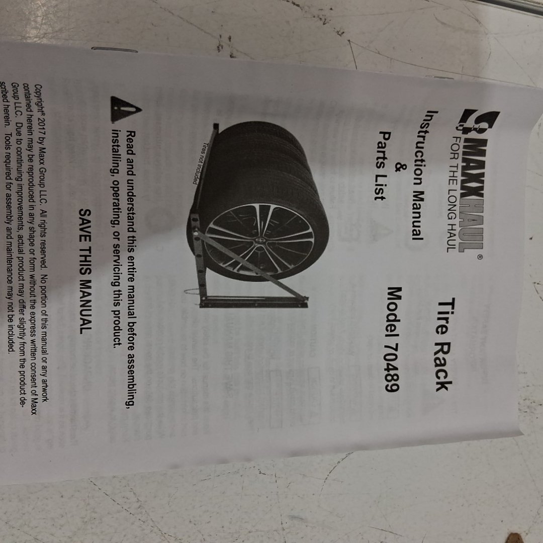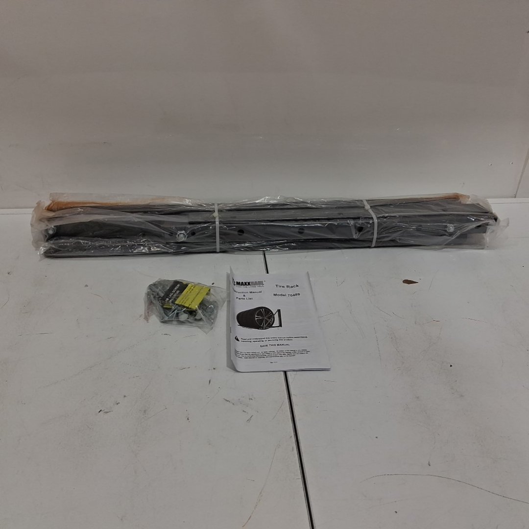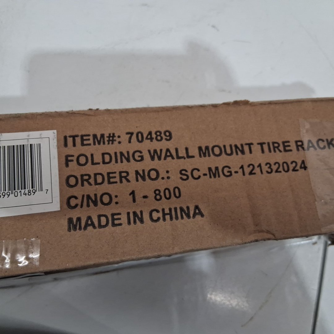 MaxxHaul Foldable and Adjustable Wall Mounted Tire Rack - 300lb cap - grey (model: 70489)