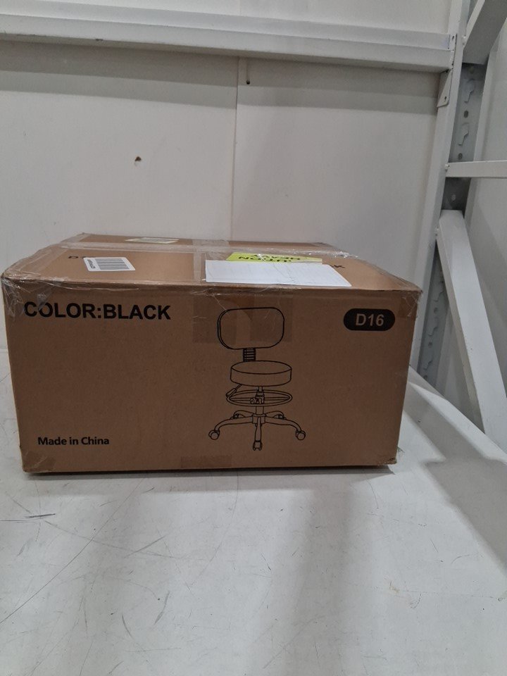 Brick Attic Drafting LEATHER Chair with Backrest - 300LB MAX - BLACK (MODEL: D16)