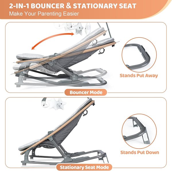 orzbow 2-in-1 portable baby bouncer seat for 0-9M infant to toddler - 21lbs - grey (model: a230718h0)