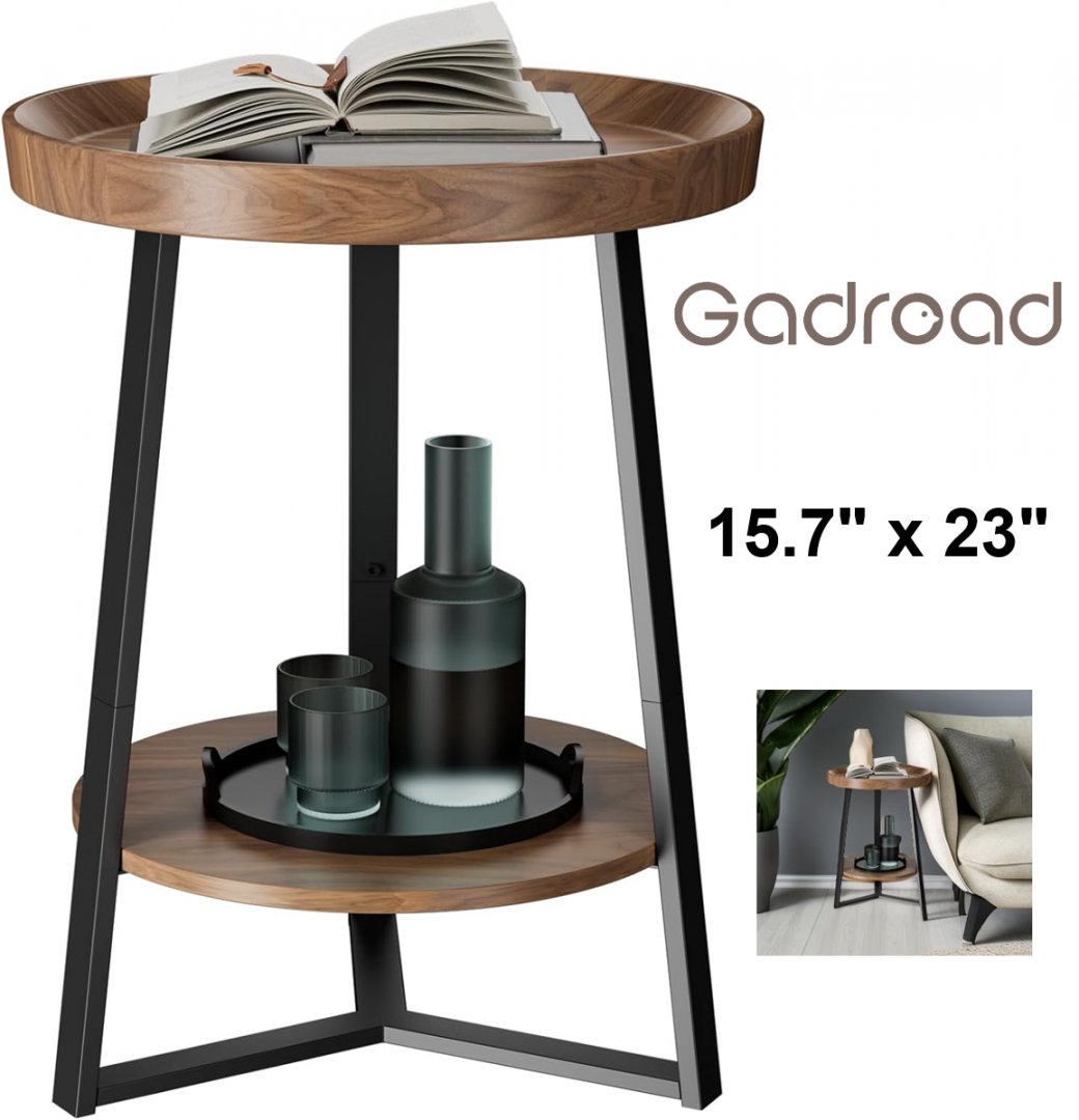 Gadroad 2-tier Round End Table with Storage Shelf - 15.7" x 23" - BROWN (MODEL: pg-02st024a)