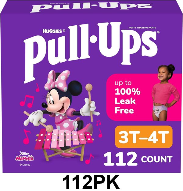 112PK girls HUGGIES PULL-UPS LEARNING DESIGNS TRAINING PANTS - SIZE 3T to 4T (32-40 LBS) - minnie MOUSE