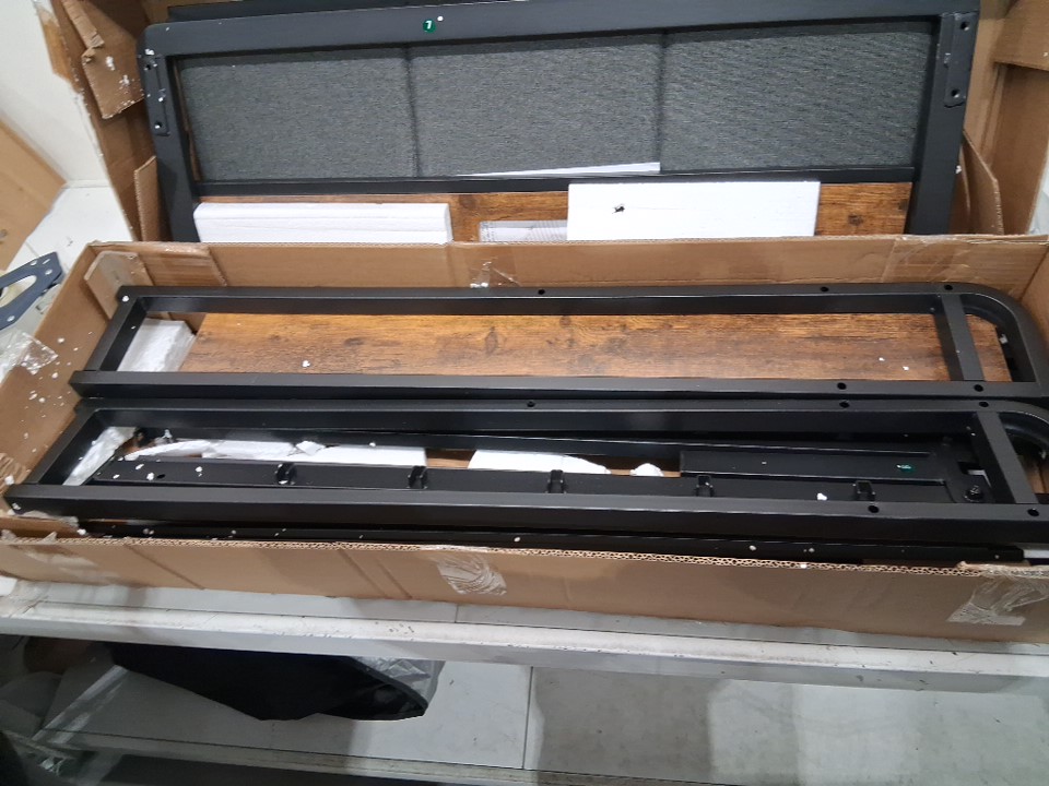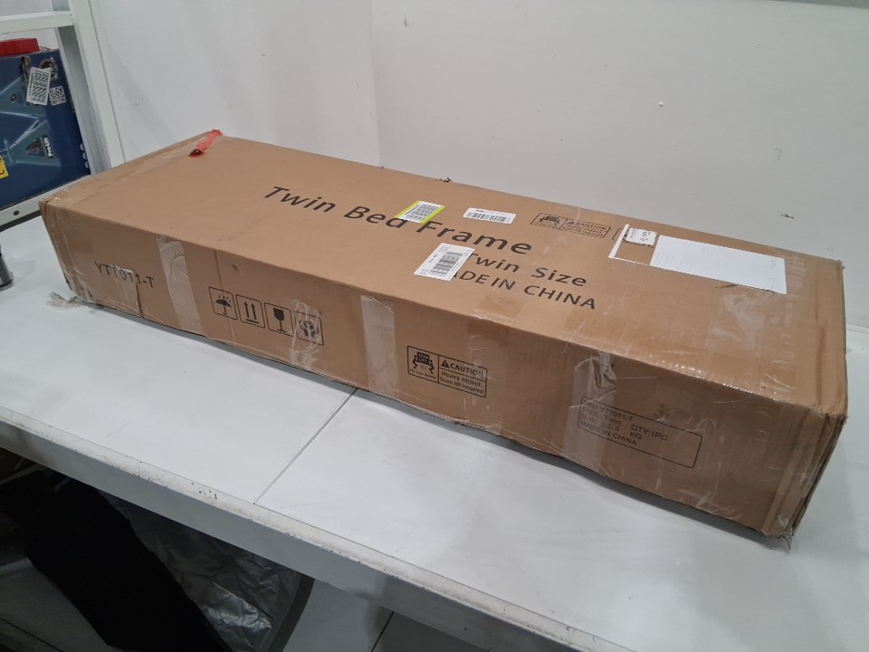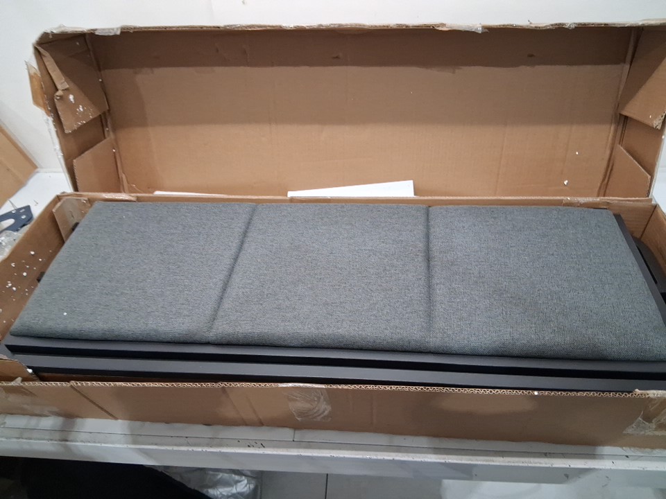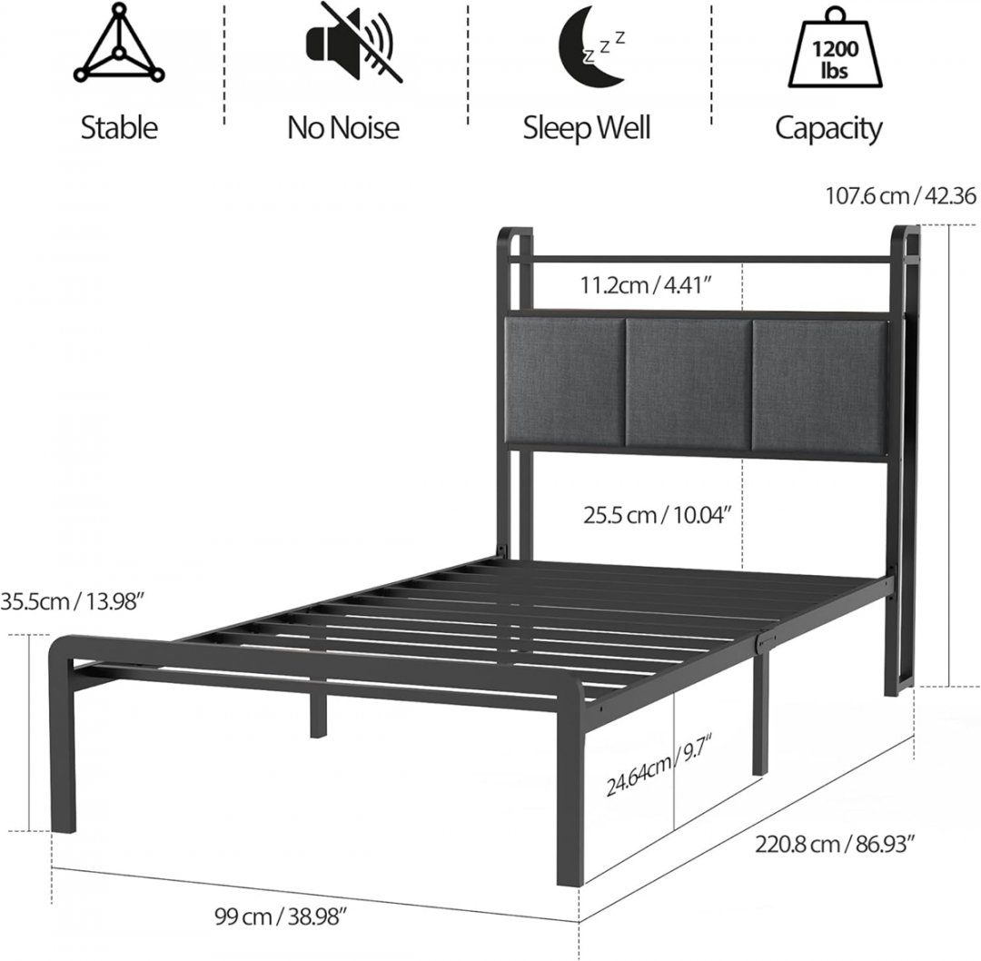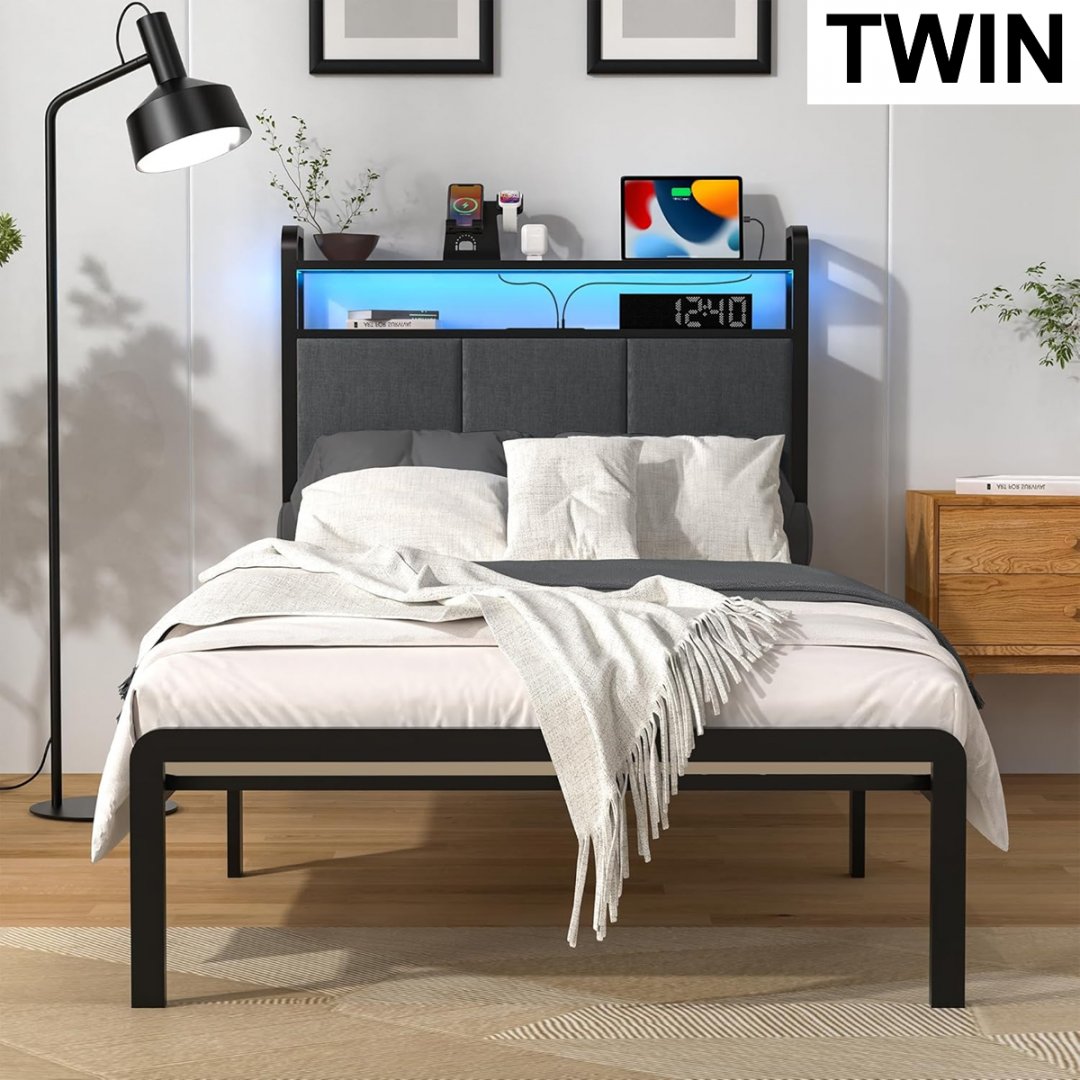 UPHOLSTERED BEDFRAME WITH HEADBOARD and led light strips TWIN SIZED 39" X 76" X 42.7", 400 LB CAPACITY, DARK GREY