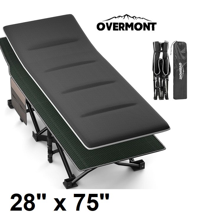 Overmont Portable Folding Camping Cot with cushion for Outdoor Travel - 28" x 75" - black/navy/green (MODEL:om006049)
