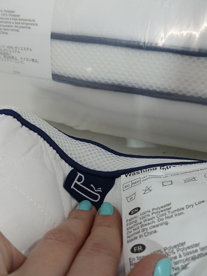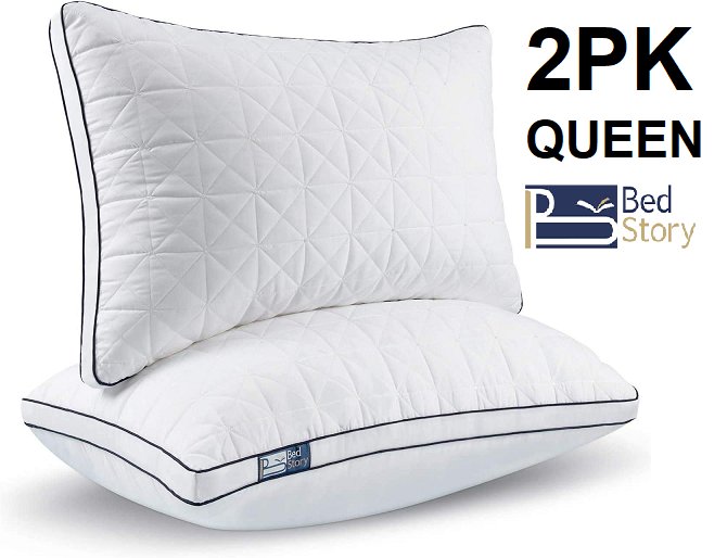 2PK BEDSTORY HYPOALLERGENIC DOWN ALTERNATIVE HOTEL PILLOWS - QUEEN SIZE (16" x 30") - WHITE / BLUE TRIM