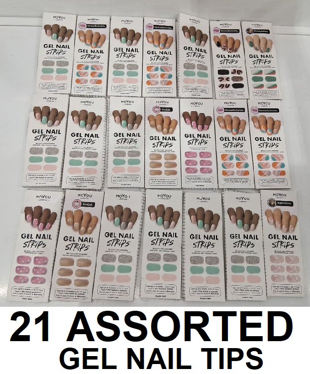 21 ASSORTED GEL NAIL TIPS - VARIOUS COLOURS/PATTERNS