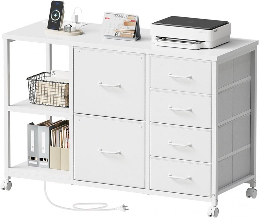MAIHAIL 6 Drawer File Cabinet with Charging Station - 15.6" x 39.3" x 25.1" - WHITE (MODEL: SZ901)