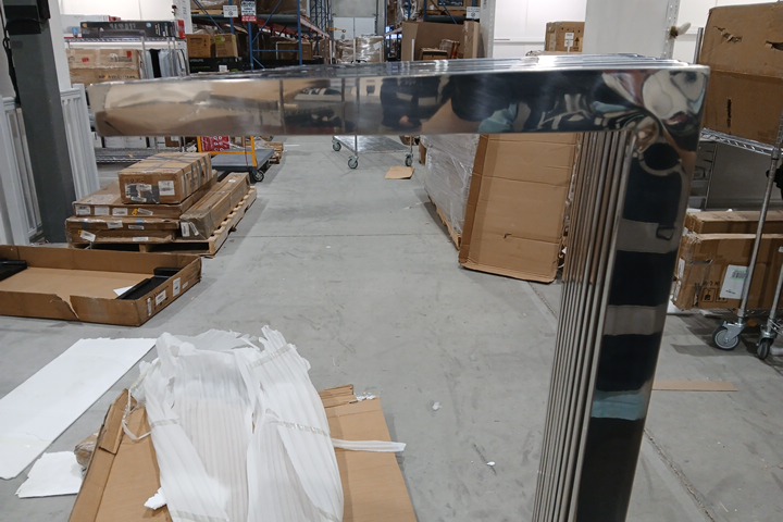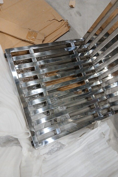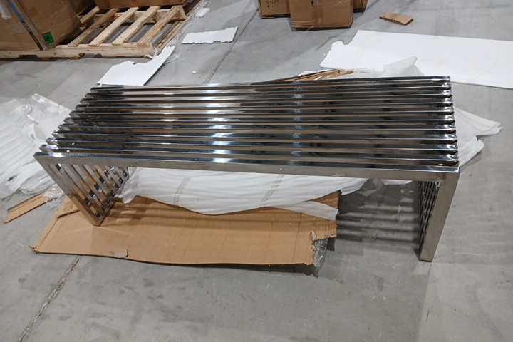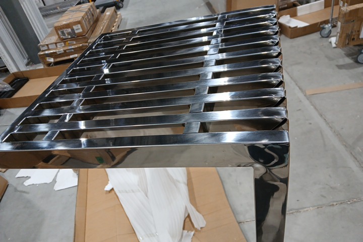 One of the leg frames appears to have been bent inward slightly. Small denting on the other side on the inside of the frame