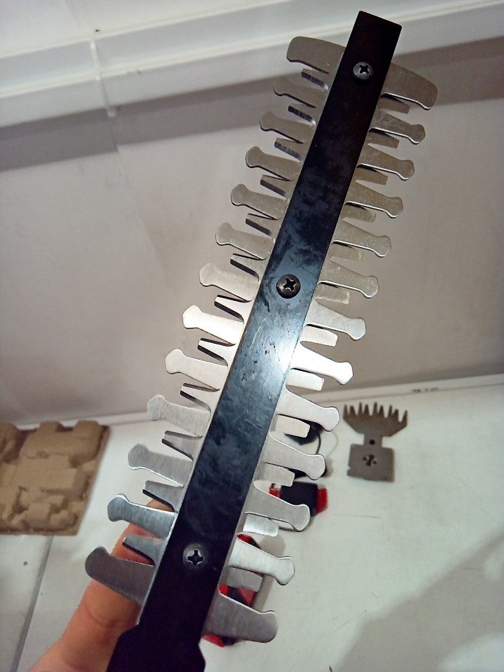 There are light markings on the blades. Ours does not include a battery. (SEE PHOTOS)