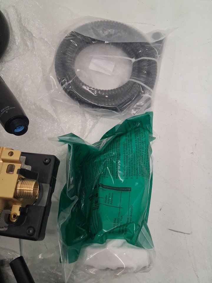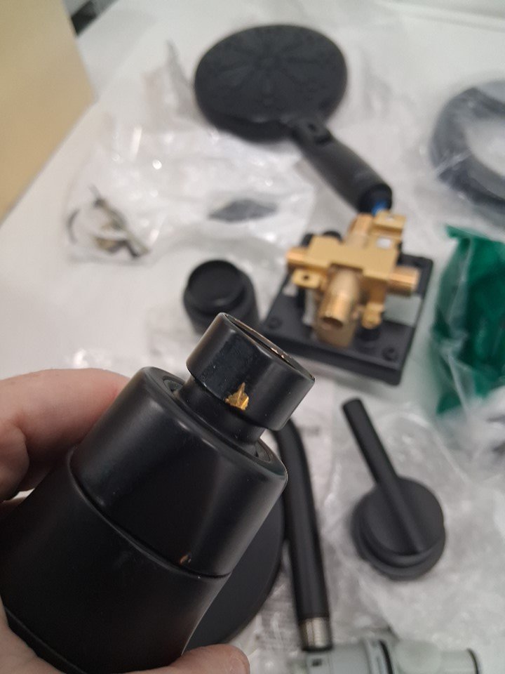 shower attachment has paint chipped on it, faucet, hose and hardware is sealed