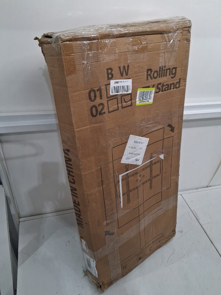 Hovadova Rolling Rotatable Vesa Mount TV Stand with Hand Crank Lift - Supports 42"-75" TV's - 110lb Max - White (Model: BSA-XZSY-02)