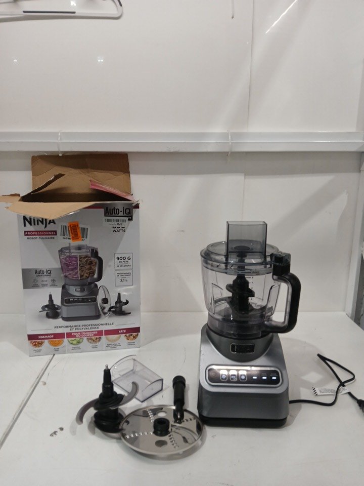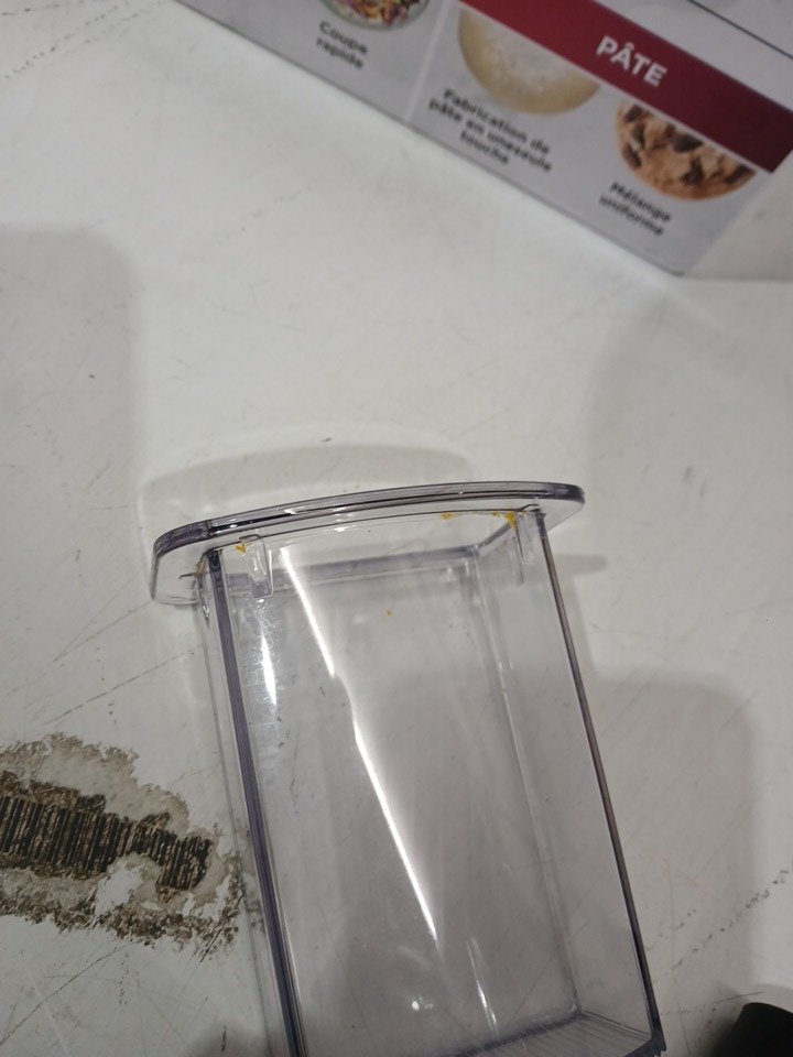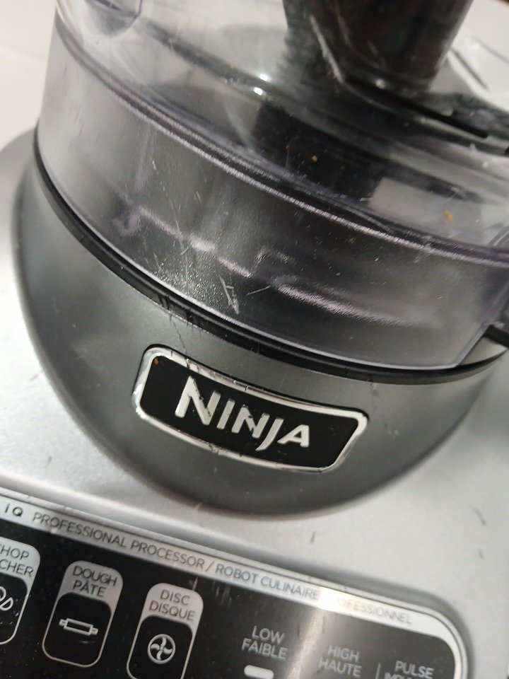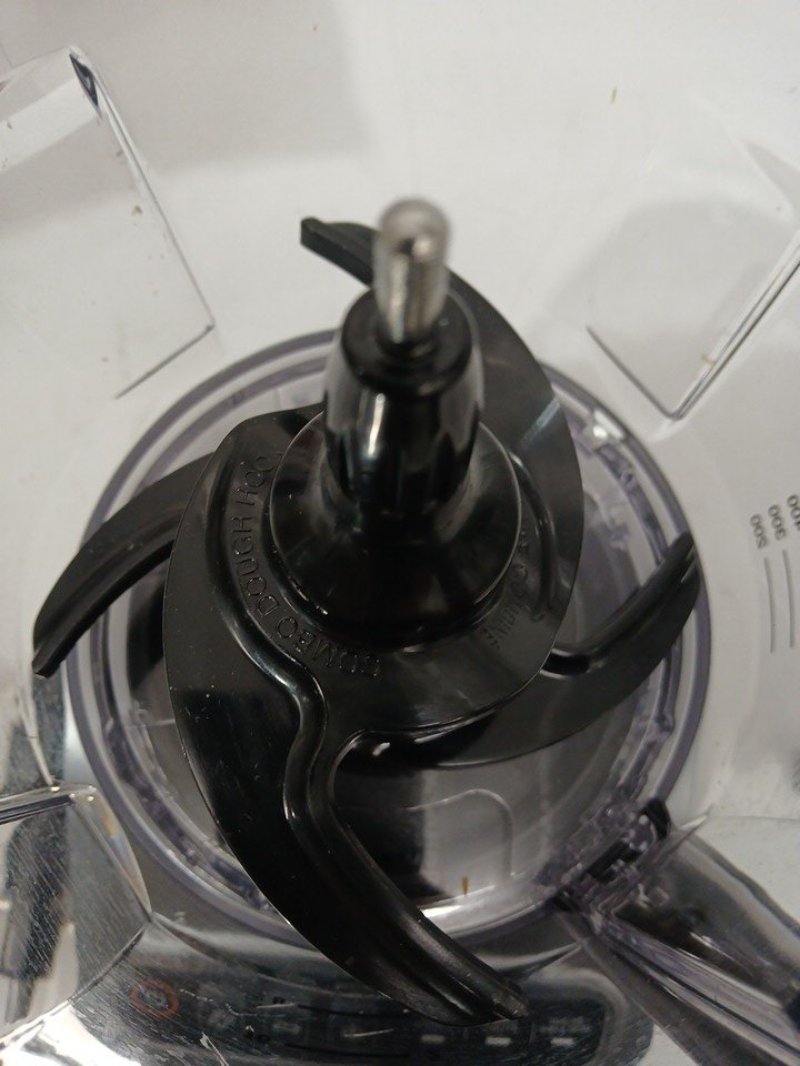 Tested for power. Surface of the item is very scratched. Has some residue on the blades and other parts.