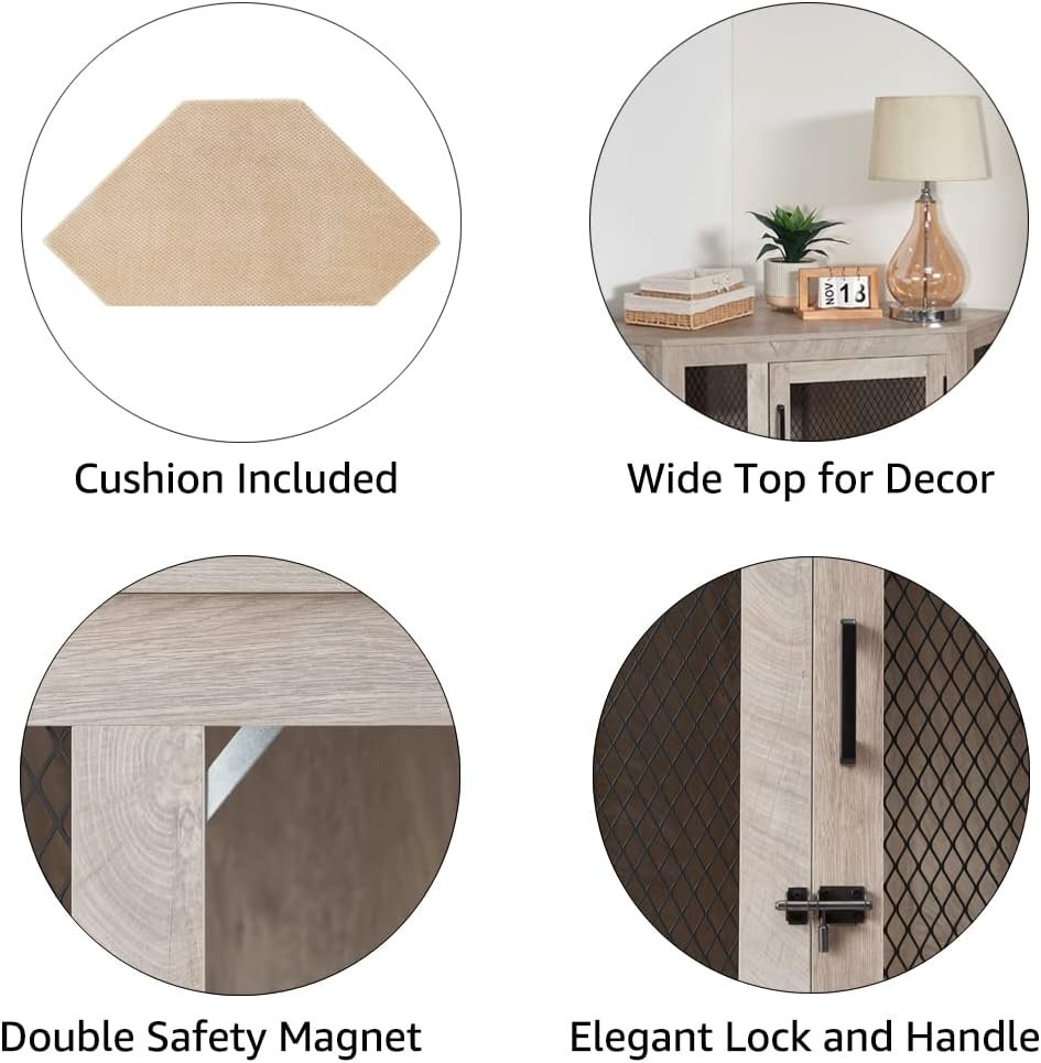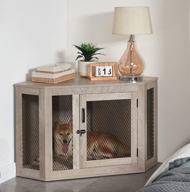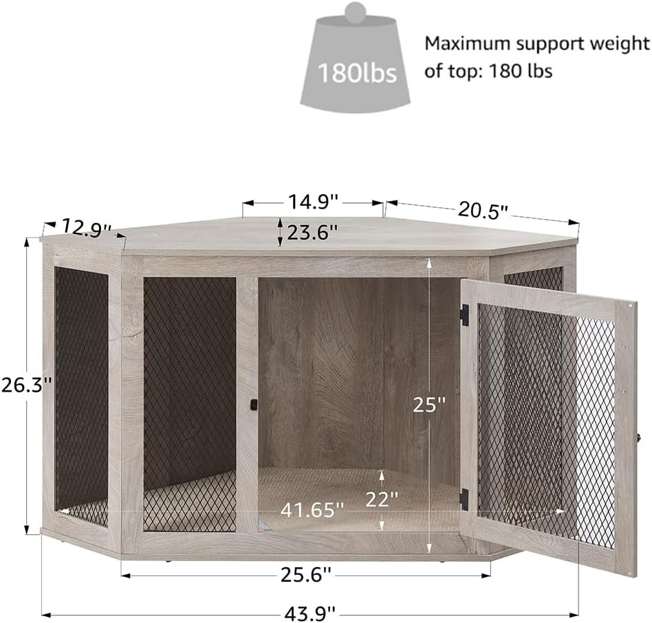 unipaws wood corner dog crate kennel with soft pad insert - weathered grey (model: uh5165)