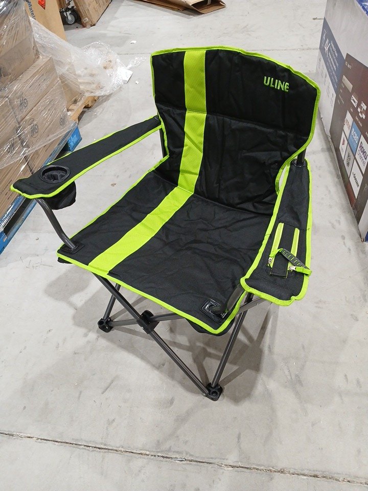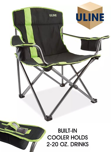 uline water resistant camping chair with built in cooler hold - black/lime (model: s-20399bl)