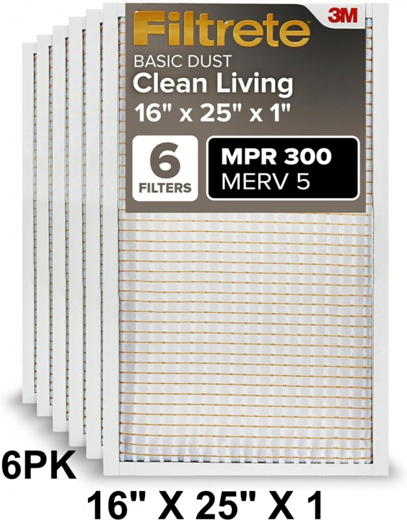 6PK 3M Filtrete Clean Living Basic Dust Filter - MPR 300 - MERV 5 - 16" X 25" X 1"