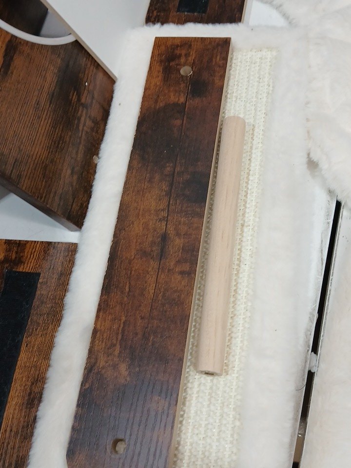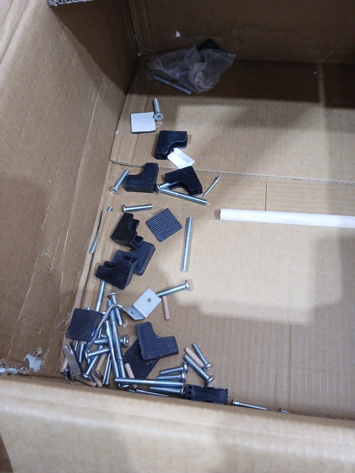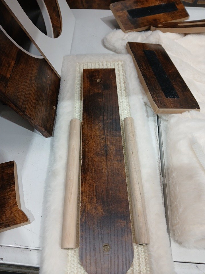 Seems to be missing some supporting parts for the cloud bed. Can not confirm how many missing pieces there may be due to missing instructions. Some poles have a discolored spots and certain pieces have chips in the wood.