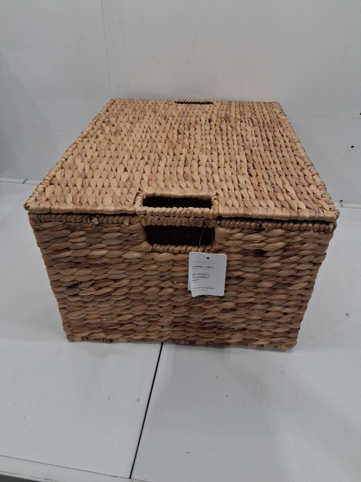 pottery barn Savannah Handwoven Seagrass Lidded Basket - 20.7" x 10.25" - SEAGRASS
