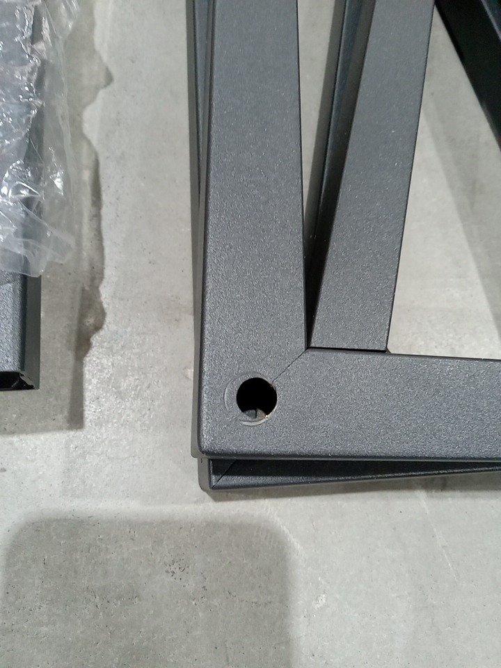 their are some scuffs, blemishes and fraying on this item as well as some fraying on the assembly points indicating previous assembly. all vital parts for assembly are present.