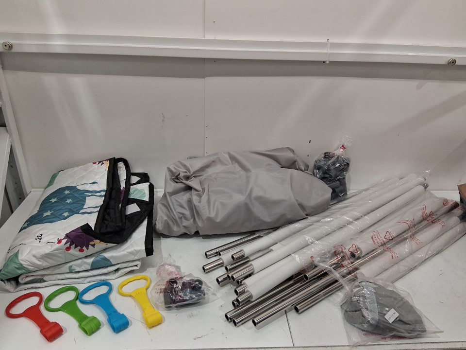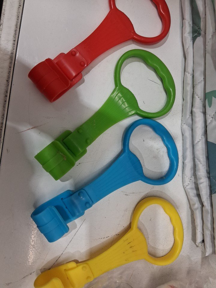 missing manual so unable to complete piece count, item has light debris on the pull up handle attachments indicating previous use, missing ball pit balls