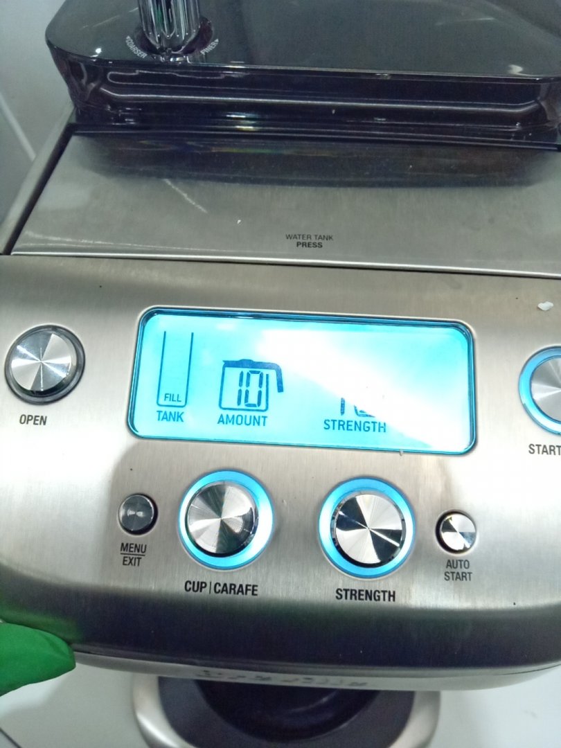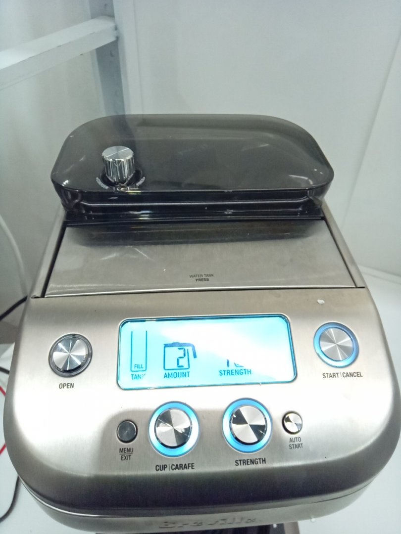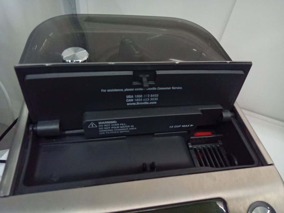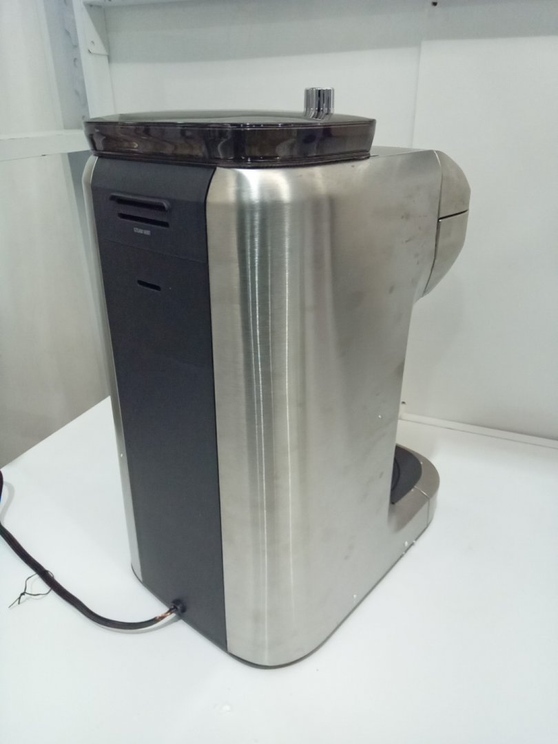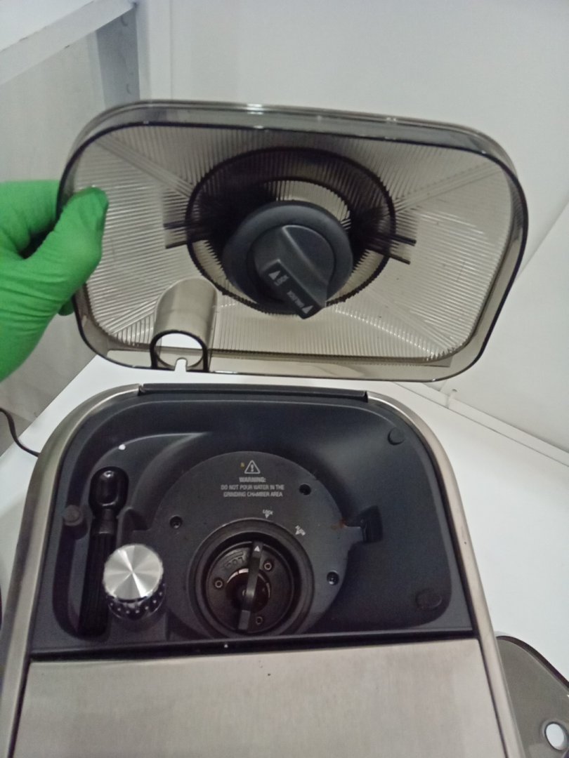residual grinds from previous use. tested for power only. set is missing the carafe, which is replaceable.