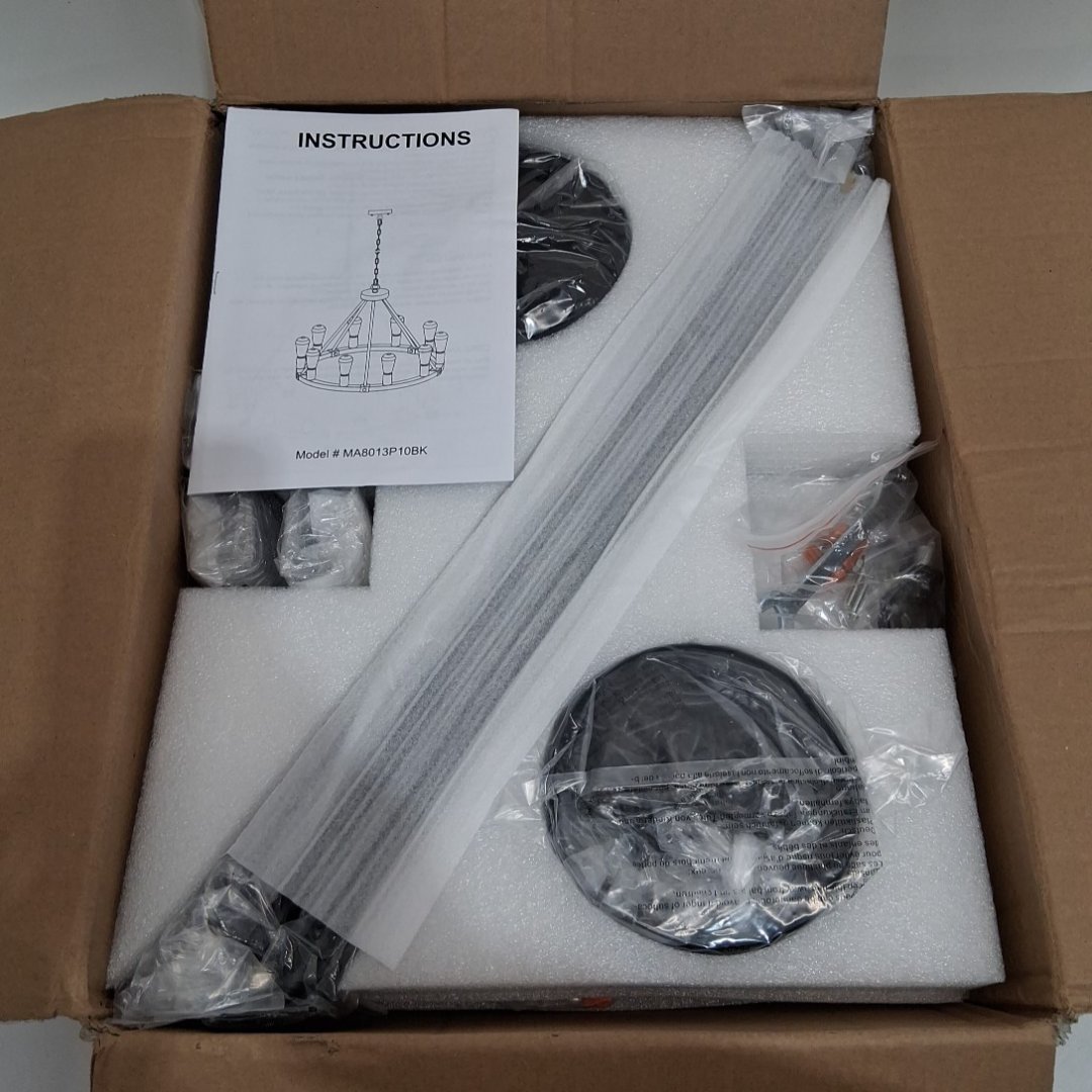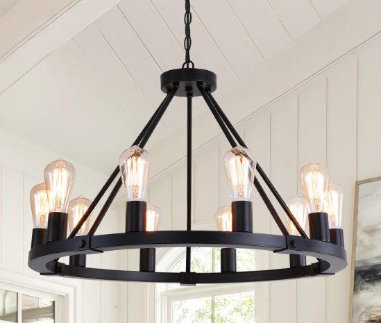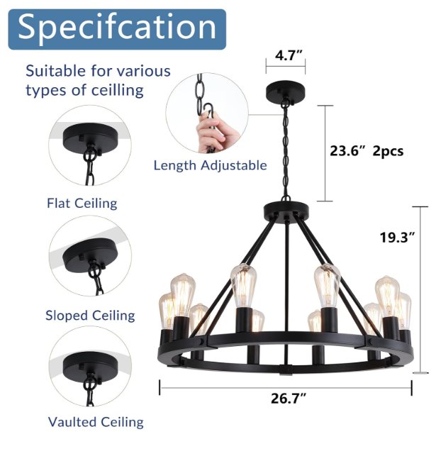 9MMML 6 light modern iron farmhouse wagon wheel chandelier light fixture- 26"- black (model: ‎8013P10BK)