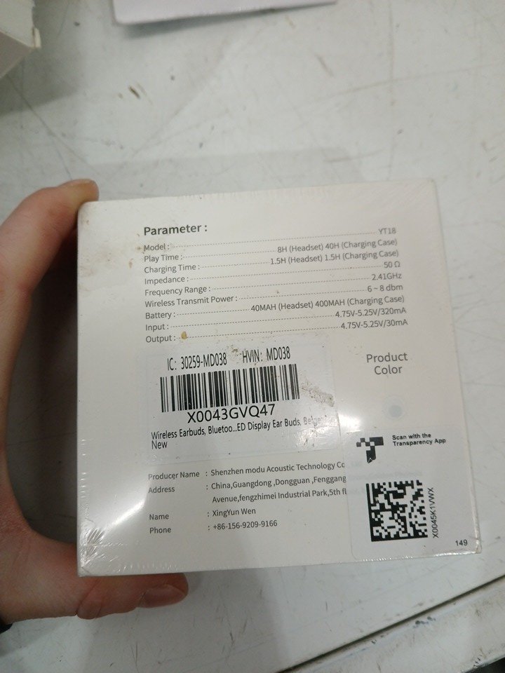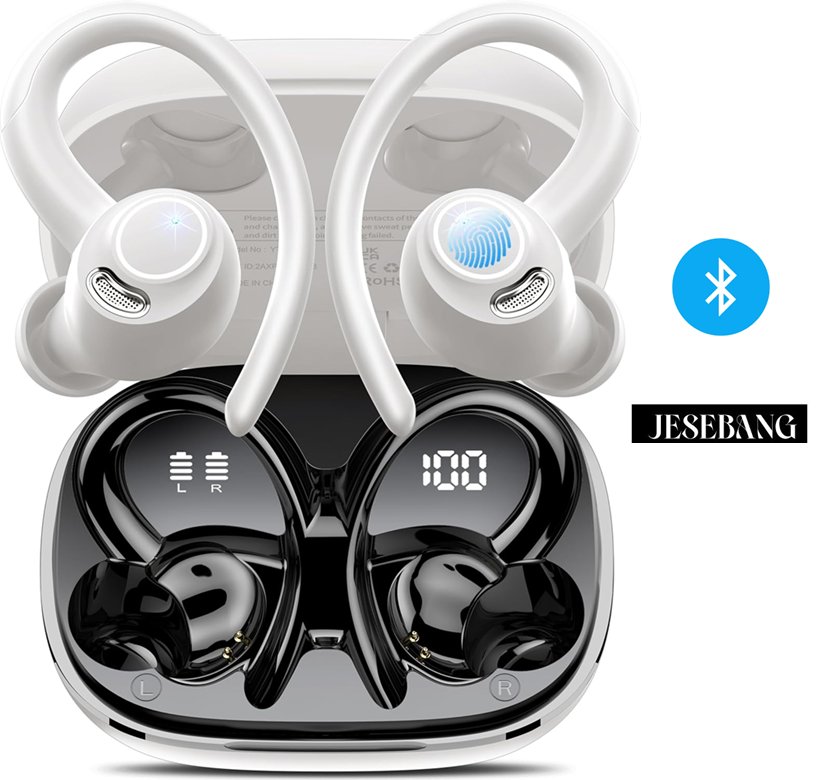 jesebang sport bluetooth wireless earbuds with led display - white (model: yt18)