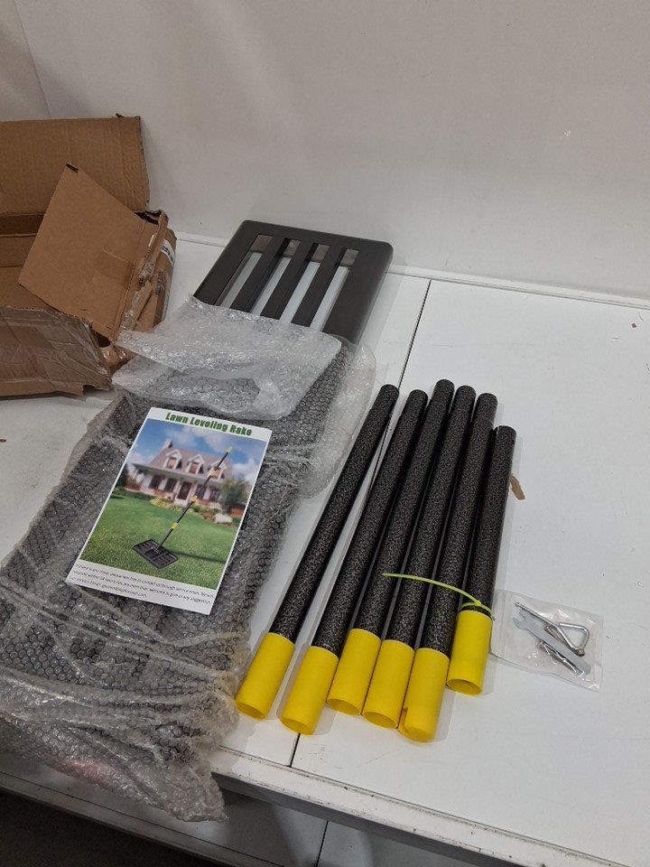 BsBsBest Lawn leveling rake with adjustable handle - 6ft - Steel/Yellow