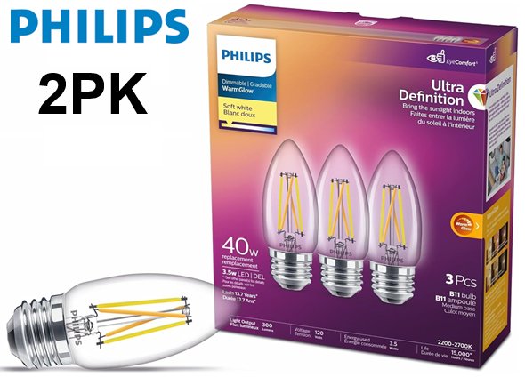2PK Philips Ultra Definition LED Light Bulb - 40W 120V 300LM 2200-2700K - SOFT WHITE (MODEL: 9290030899A)