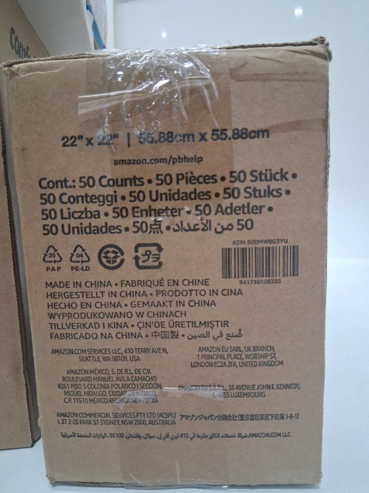 50PK AMAZONBASICS REGULAR PET DOG AND PUPPY TRAINING PADS - 22" x 22"