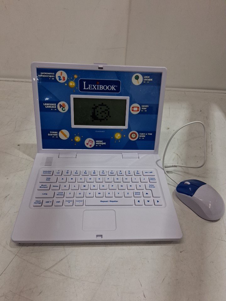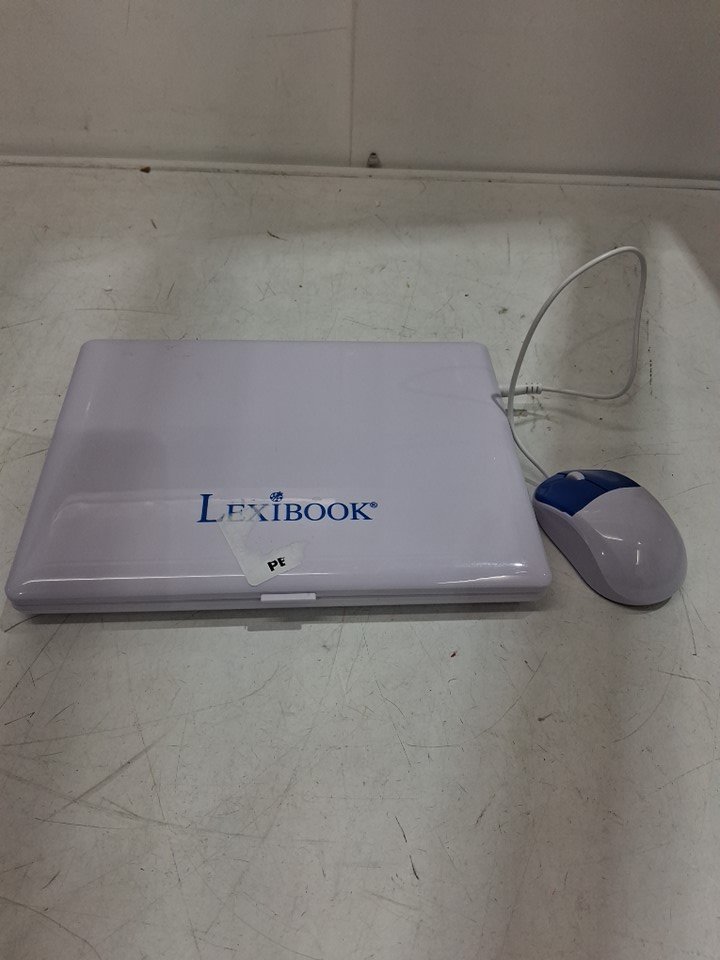The item has some sticky tape residue on the top of the laptop, which can be easily cleaned. It has been tested for power.