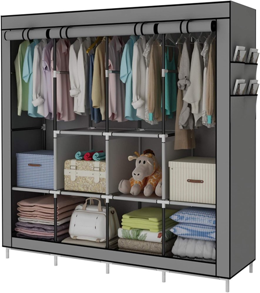 ACCSTORE Portable wardrobe clothing shelves and storage organizer - 66" x 18" x 67" - Gray - (Model: GY-49)