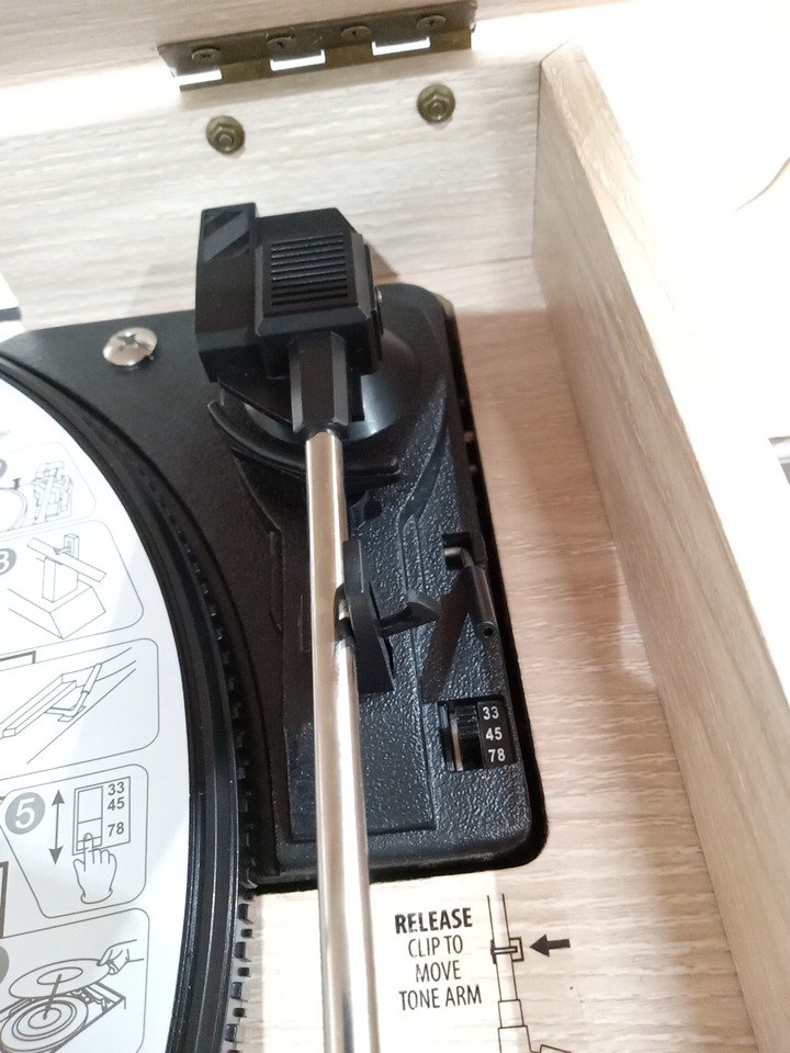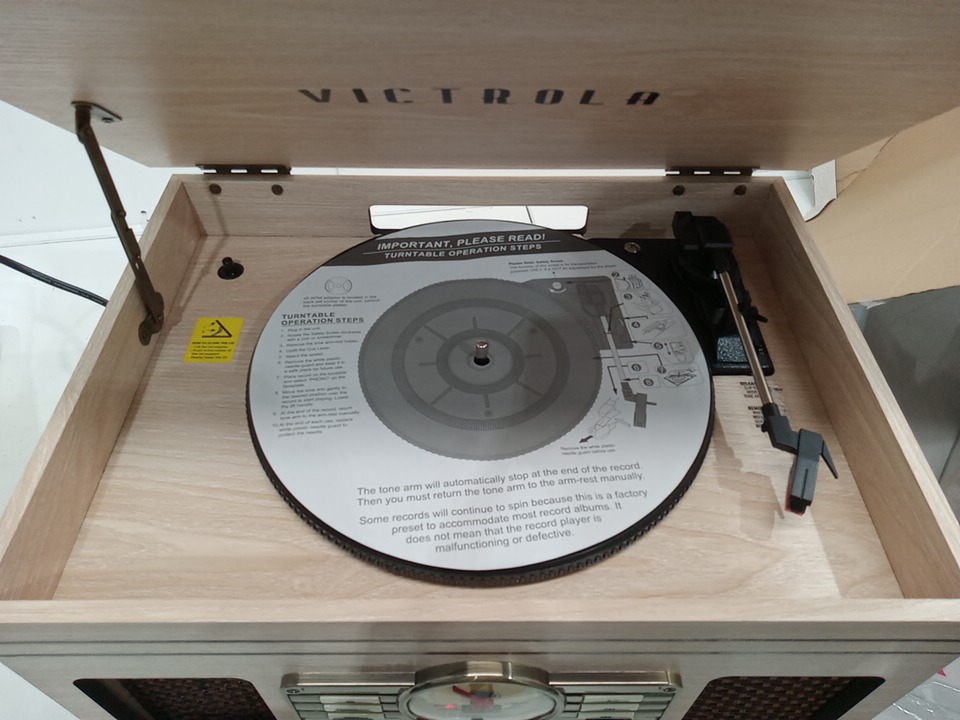 tested for power. needle locking handle is snaped along with the left speaker loose on the inside. see images.