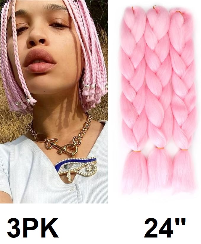 3PK Jumbo Braiding Hair Extensions - 24" - a16 - light pink