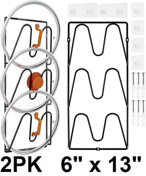 2PK wall mounted pot lid organizer rack - 6" x 13" - black