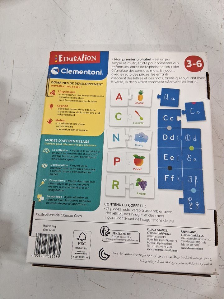 ** FRENCH EDITION ** Clementoni Education Mon Premier Alphabet mini puzzle learning set (MODEL: 52593)