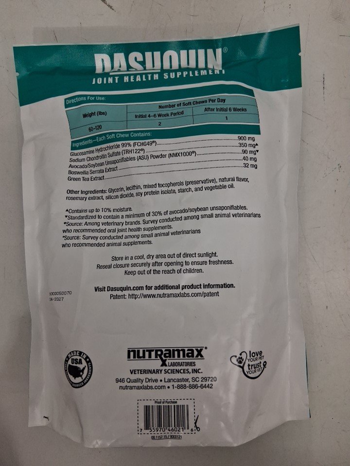 150PC Nutramax DASUQUIN JOINT HEALTH SUPPLEMENT SOFT CHEWS FOR LARGE DOGS (+60LB)