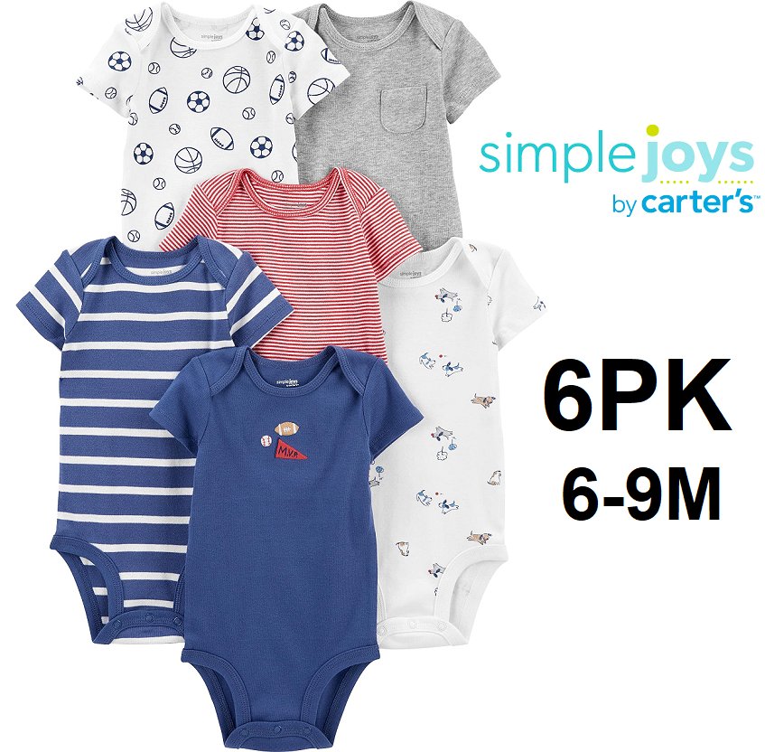 6PK BABY BOYS Simple Joys by Carter's Short Sleeve Bodysuit - 6-9 MONTHS - ASSORTED