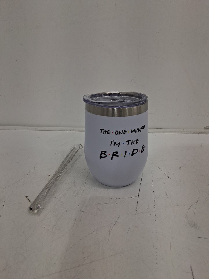 neweleven stainless steel double wall wine tumbler - 12oz - "the one where i'm the bride" friends style cup - white